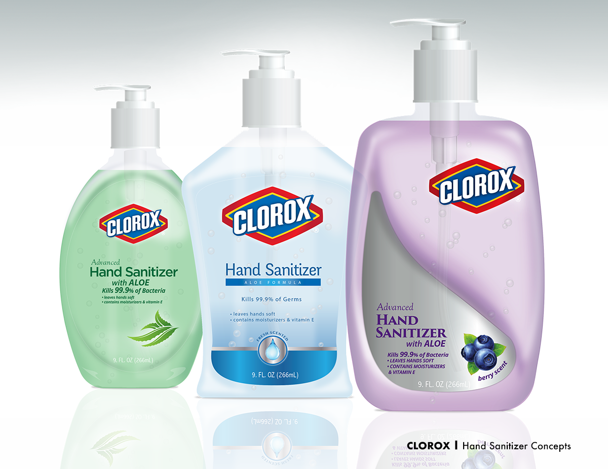 Assigned to redesign the Clorox Hand Sanitizer, developed both the bottle and label designs to appeal to a diverse range of demographics, catering to the preferences of both female and male consumers.